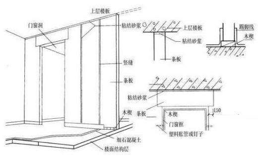 板材隔墻是指輕質(zhì)的條板用粘結(jié)劑拼合在一起形成的隔墻。即指不需要設(shè)置隔墻龍骨,由隔墻板材自承重,將預(yù)制或現(xiàn)制的隔墻板材直接固定于建筑主體結(jié)構(gòu)上的隔墻工程。