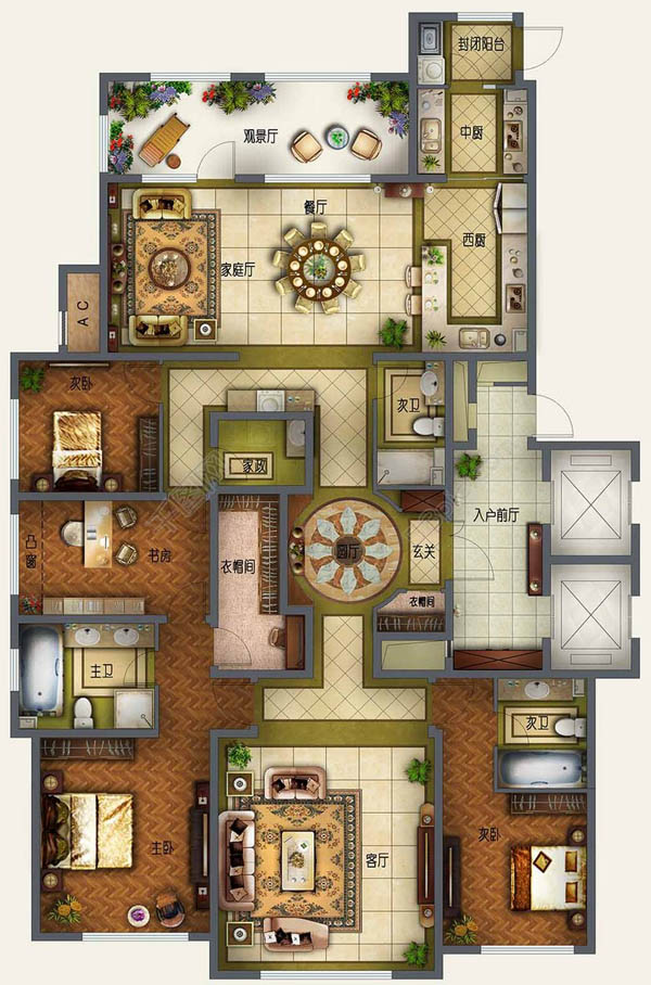 首先,功能分區(qū)。客廳、過(guò)廳、臥室、廚房、餐廳、衛(wèi)生間、浴室、洗衣房、書(shū)房、電腦間、吧臺(tái)、花園、陽(yáng)臺(tái)、健身房等。